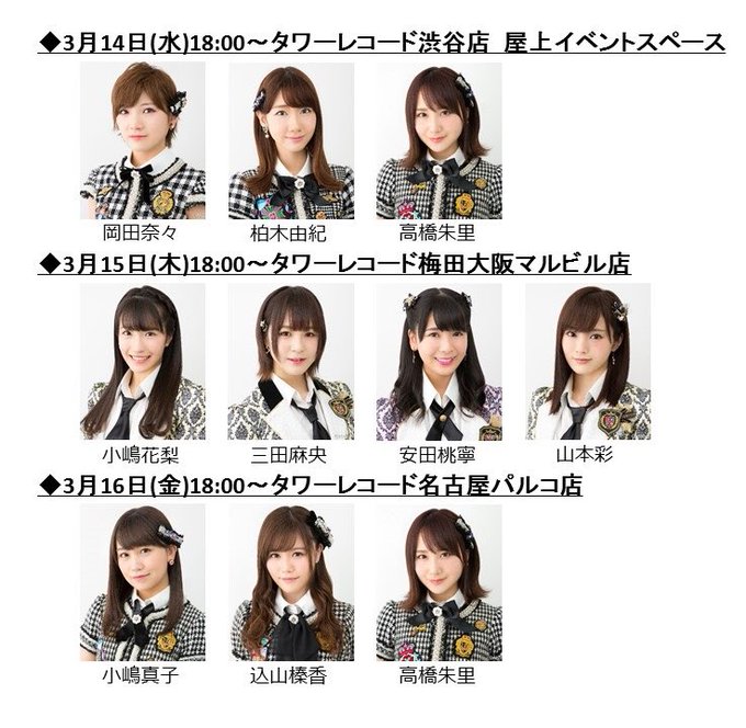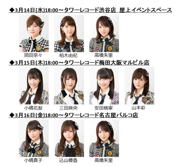 3月14日、15日、16日に東京、大阪、名古屋のタワーレコードさんに画像のメンバーが伺います。