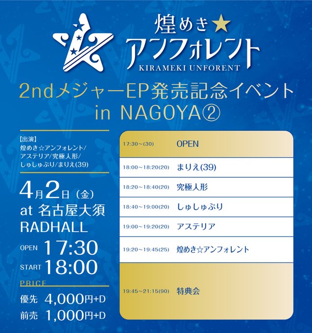 達家真姫宝🌹煌めき☆アンフォレント@makiho_1019 -- おはよう〜☀️名古屋2日目!!!今日も会えるの楽しみにしてる🥰🤍 twitter.com/kirafore_info/… 煌めき☆アンフォレント🆕 4/2(金)名古屋大須RADHALL🦋煌めき☆アンフォレント2ndメジャーEP発売記念イベントn NAGOYA②🦋⏰OPEN 17:30 START 18:00💰優先¥4000/ 前売¥1000🎤 19:20~(25) 📸 19:45~(90)🎫チケット販売中t.livepocket.jp/e/0402_kirafor… pic.twitter.com/NCHoi5NOqT