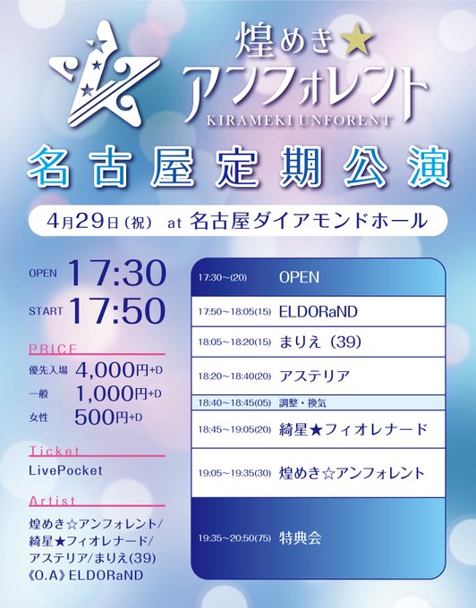 達家真姫宝🌹煌めき☆アンフォレント@makiho_1019 -- おはよ〜☀️雨やだね、、、、今日からGW!!!名古屋一緒に過ごそうね〜☺️❤︎ twitter.com/kirafore_info/… 煌めき☆アンフォレント🆕 🎫当日券情報🎫📅4/29 名古屋ダイアモンドホール💫本日2公演ともに当日券を販売致します。💫1部 ¥2,500+D 2部 ¥1,500+D💫前売り券の方が入場次第ご案内します💫START時間まではLivePocketにて購入も可能です①t.livepocket.jp/e/0429_stafio②t.livepocket.jp/e/0429_kirafore pic.twitter.com/EIJcpLjawb