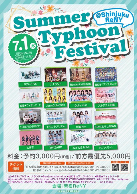 達家真姫宝🌹煌めき☆アンフォレント@makiho_1019 -- こちらチケット販売しました〜🎟♡ twitter.com/kirafore_info/… 煌めき☆アンフォレント🆕 💫7/1(木) 新宿ReNY💫🍧Summer Typhoon Festival🍧▫️OPEN14:30 START15:00▫️予約¥3000円/前方優先¥5000▫️特典 メンバー指定チェキ券1枚(50限)🎫6/10 12:00~▫️前方優先 eplus.jp/sf/detail/3440…▫️一般 eplus.jp/sf/detail/3440… pic.twitter.com/KbkK31SXt1