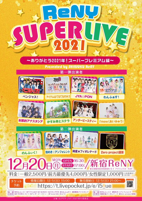 達家真姫宝🌹煌めき☆アンフォレント@makiho_1019 -- おはよ〜🥱本日はまず新宿ReNY!時間早めですがお待ちしています!35分ライブ曲たくさんやるよ☺️❕の後はワロップ!今年ラストのワロップだからいっぱいたのしむ!!!!! twitter.com/kirafore_info/… 煌めき☆アンフォレント 【TT公開💫】『ReNY SUPER LIVE 2021』🗓12/20(月)📍新宿ReNYOPEN16:30 / START 17:00一般¥2,500/ 前方最優先¥4,000 / 女性¥1,000(枚数限定) (+各D代)🎤15:45~(35) 📸16:25~(50)A🎁特典 ランダムチェキ券2枚(60枚限定)🎫チケット販売中t.livepocket.jp/e/i5_ue pic.twitter.com/p3RHvoEUBV