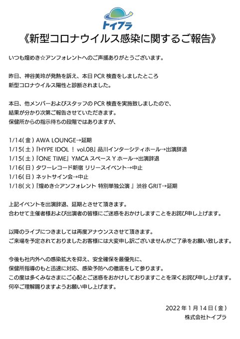 15.16.18のライブが中止、延期と