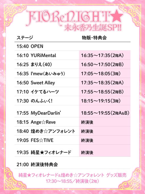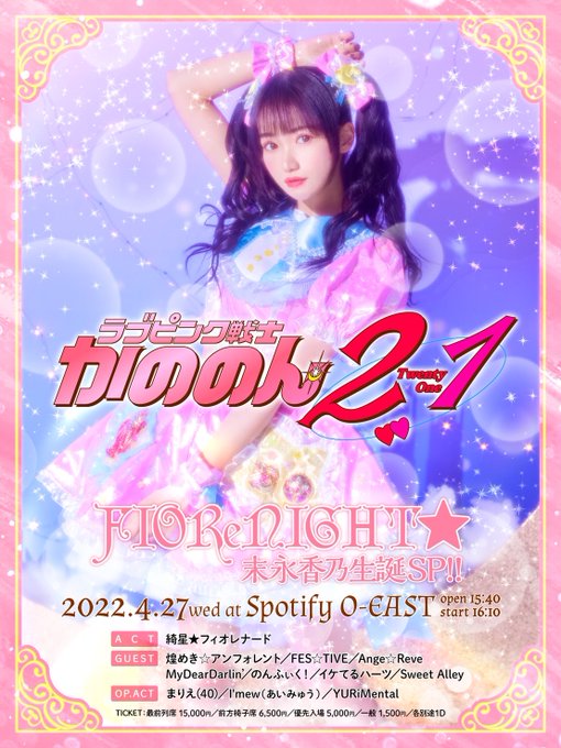 達家真姫宝🌹煌めき☆アンフォレント@makiho_1019 -- おはよ〜🥱本日はかのちゃん生誕!!お誕生日おめでとう🌸🤍キラフォレは18:40~ です!O-EAST大好きな場所だからたのしみ!!!お待ちしてます!!! twitter.com/kirafore_info/… 煌めき☆アンフォレント 🌸 FIOReNIGHT★ -末永香乃生誕SP!!-🌸🗓4/27(水)Spotify O-EAST👛FCSS¥15,000/S¥15,000/A¥6,500/B¥5,000/C¥1,500/D¥10,000/🎁FCSS,S,Aチケットでの入場時にトイプラチェキ券をプレゼント!🎫t.livepocket.jp/e/kano_bd2022FCSS先行受付4/4 22:00~4/6 23:59発表 4/7 18:00)一般発売4/8 22:00~ pic.twitter.com/R7Zuck2Z8m
