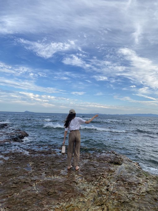 野島 樺乃@nojimakano_0906 -- つるんと滑って転けそうになりながらも頑張ってポーズ決めてる図 #ねえもう夏休みだって #ピースの小指とても気になる #これもひと夏の思い出 pic.twitter.com/F3pUE7rrWv