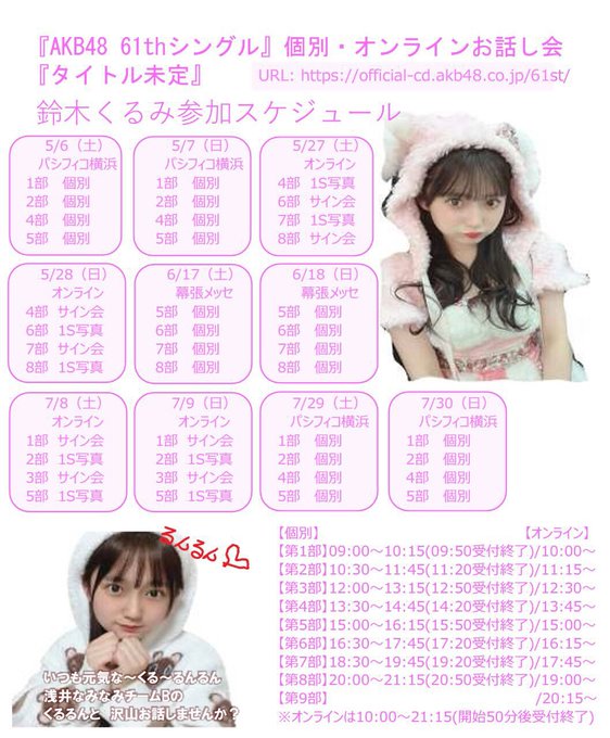 鈴木くるみ@akb48kururun -- お話し会の1次受付12時までです♡色々んな事お話したいなぁ🥰よろしくお願いします!!official-cd.akb48.co.jp/61st/ pic.twitter.com/ix6cfd2sCO