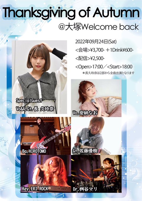 長久玲奈@__cho__kurena -- 明日でございます!わくわくです。楽しみましょう!!🥰 twitter.com/welcomebackwb/… 大塚Welcome back 明日の公演はこちら!『Thanksgiving of Autumn』開場17:00開演18:00入場¥3,700+1D¥600配信¥2,500入場チケットご予約tiget.net/events/190061配信チケットご購入twitcasting.tv/c:wb_haishin/s…安納なおHOROTOMO佐藤優樹ERI ROCK桝谷マリSpecial Guest 長久玲奈どうぞお楽しみに! pic.twitter.com/phJE9lk3kv