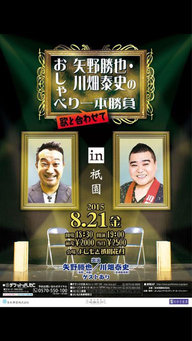 門脇佳奈子@kanakichiyade -- カナらず、キチっと楽しみます!よろシュウです👍笑 twitter.com/kawabatayasush… 川畑泰史(吉本新喜劇) 21日の祇園イベントゲストはチーモンチョーチュウ高橋智(へびいちご)吉田裕(ドリル人)福本愛菜(あいにゃん)NMB48からのメンバーは明日発表しますカナらずキチっとしますんでよろシュウですきてねー pic.twitter.com/8OkrTALBop