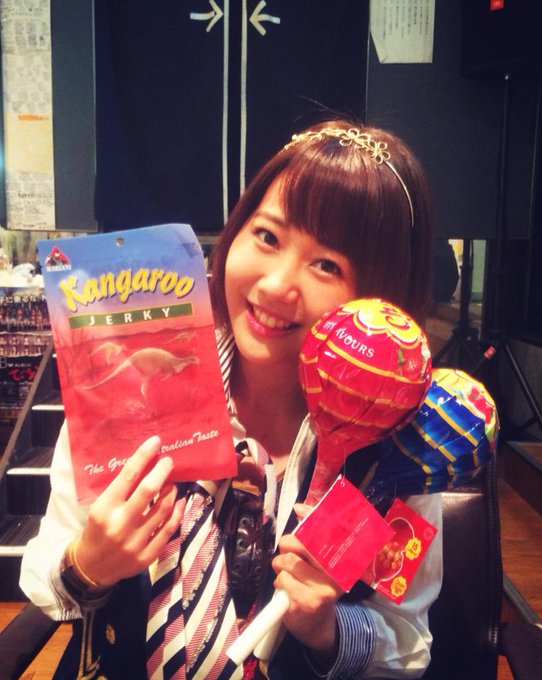 門脇佳奈子@kanakichiyade -- 昨日えみちがオーストラリアとスペイン(たぶん)のお土産持ってきてくれたよ⭐️カンガルーのジャーキーとでっかいチュッパチャップス!海外の匂いがした😤 pic.twitter.com/8pvn6eiKOH