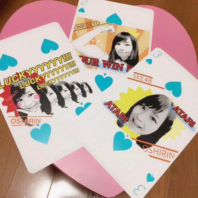 青木詩織(おしりん)@oshirin_dayo -- 今日のババ抜き会は優希ちゃんと2人でちょこっと工夫してみたよ🤗途中、当たりの方がなくなっちゃってサインだけになってしまってごめんなさい🙇🙇これならハズレでも「ふふっ」ってなれたかな☺️💓 pic.twitter.com/ApcKkdqH4A