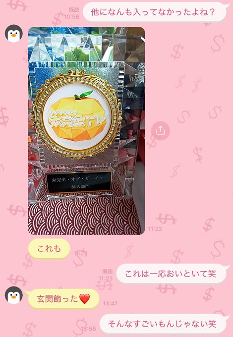 家に置いとく場所がなかったので実家に送ったらお母さんからLINEきた🍊#未完全tv pic.twitter.com/F6pjWsxBrr