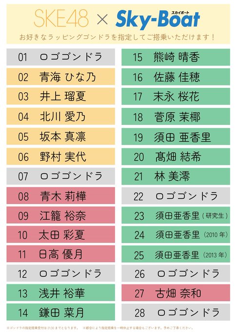 青海ひな乃@a_hinano_48 -- 今年もありがとうございます!☺️💓ひなのらしいコメントだから乗ってみて♡笑笑 twitter.com/skyboat3/statu… Sky-Boat(スカイボート) 祝㊗#14周年【#SKE48×🎡#観覧車 Sky-Boatコラボ】いよいよ明日9/16(金)よりスタート‼🏃💨①お好きなメンバーのゴンドラに指定搭乗可能🥳②ご搭乗記念プレゼントも勿論!(ランダム全61種)③ラッピングメンバーの音声&MVもお楽しみに♪⬇️詳しくはこちら⬇️sunshine-sakae.jp/event/eve_987.… pic.twitter.com/KF8Fxit18q