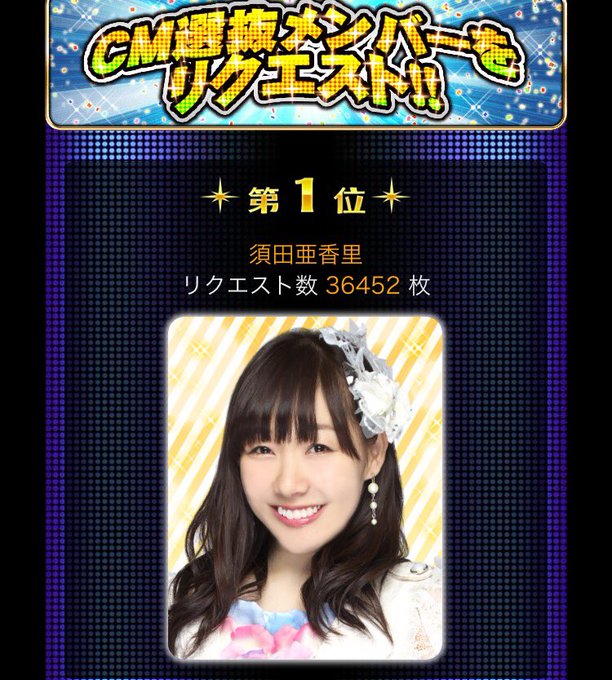 須田亜香里(SKE48)@dasuwaikaa -- きゃぁぁぁあこんなん初めてよ!ありがとうございますヽ(;▽;)ノ twitter.com/sudanosu1031/s… 須田亜香里応援アカウント SKE48 Passion For YouのCM選抜16名を決めるイベントが開催中!須田亜香里さん(@dasuwaikaa)をセンターへ!14日12時に予選速報発表。なんと速報1位です!気を緩めず引き続き頑張りましょう! pic.twitter.com/6YaGJhk8am