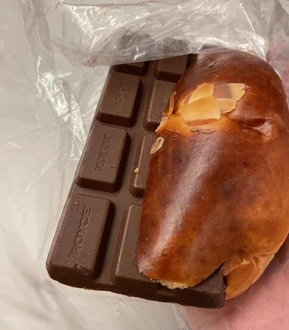 グラビア終わったら食べようと思って大切に北海道から持ち帰ってきたロイズのハイカロリーパンをぺろり。最高すぎ。 pic.twitter.com/e19kyYRbKp