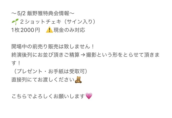 〜5/2 飯野雅特典会情報〜