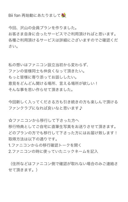 飯野 雅@miyabi_ichigo15 -- 7月末をもちましてファニコンが終了致しました!皆様ありがとうございました😊次はこちらになります!皆さま、ご入会お待ちしております🥰 twitter.com/miyabi_ichigo1… 飯野 雅 NewBiifan再始動✨入会開始日…6月12日12:00〜今回はいろんな種類の会員をご用意致しました!詳細はURLでご確認ください!mechu.chat/join_/?id=5253…リアルに会員証が届くプランもあるので皆様に合った形で楽しんで頂けると嬉しいです♡ファニコンは7月を持ちまして終了致します。 pic.twitter.com/rHhAQ6WILa