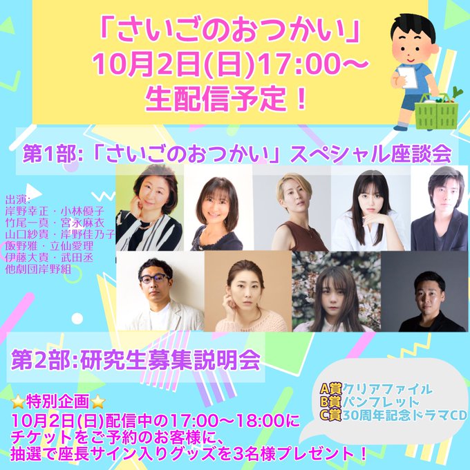 飯野 雅@miyabi_ichigo15 -- 是非見てください✨ twitter.com/kishinogumi/st… 劇団岸野組 明日10月2日(日)17時頃よりYouTube岸野組劇場にて生配信を行います‼️1部2部共に皆様からのご意見ご質問を大募集!リプまたは #さいごのおつかい をつけて呟いてください!生配信中にお答えします✨特別企画もありますよ😆💞チャンネル登録よろしくお願いいたします▶️ youtube.com/user/kishinogu… pic.twitter.com/pX3dt2coLO