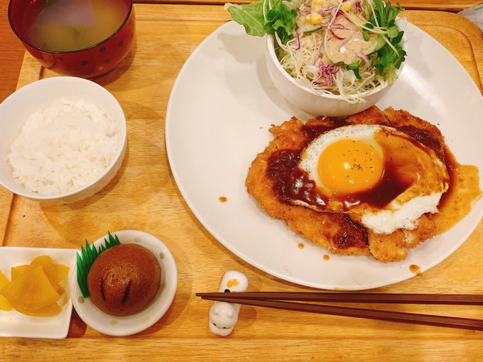 少し久しぶりのカフェレストマーズ(@caferestmars )さん!今回は4期ジョンマイガールズと🚢念願の月見チキンカツ〜☺️☺️☺️たまごうまうま🍳アイスクリームもおまけていただきました🍨美味しかった🥺