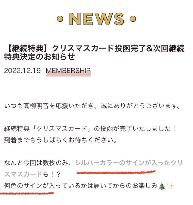 FC継続特典の直筆サイン入り