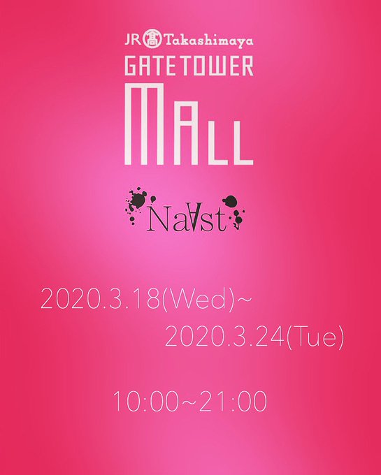 高田志織@shiopiii0719 -- NaAst POP UP SHOP@TakashimayaGATETOWER MALL にて初日Openしました◎◎◎10:00~20:00まで2F イベントスペースにて開催中です^^ pic.twitter.com/pfAZoQ519S