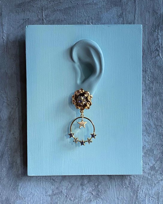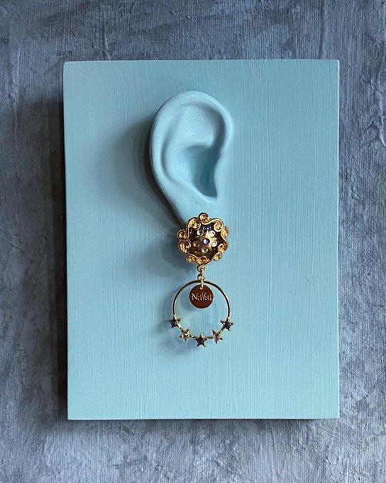 高田志織@shiopiii0719 -- デザインフレームの中は、べっ甲のような色味なので、秋冬っぽい落ち着いた印象になります🍁 twitter.com/naast0531/stat… NaAst 💎アンティークなデザインフレームとストーンをあしらった5つの星が並んだフープチャーが揺れるピアス/イヤリングです。💎-2021016PE-/Purple¥4950(税込み)💎Online shop販売時期POP UP SHOP終了後、販売開始。instagram.com/p/CUmuokYFMwV/… pic.twitter.com/UAFyVd0fgQ