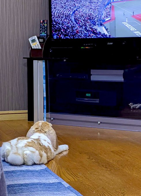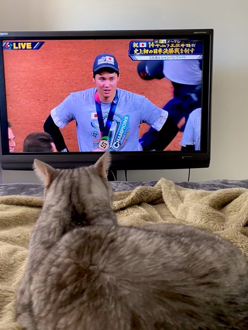 野球に釘付け🐰🐱