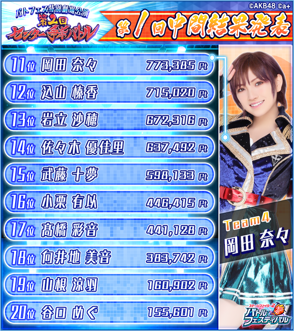 髙橋彩音(高橋彩音)@__ayn1230__ -- 17位だ✨☺️嬉しい〜!ありがとうございます♡ twitter.com/akb48_battlefe… バトフェス(バトルフェスティバル) ✨『第2回センター争奪バトル』第1回中間結果発表✨11位~20位の中間結果はコチラ🎉選抜メンバー入りもまだまだ狙える👍コーチの応援が必要です💖#AKB48 #バトフェス #センター争奪バトル pic.twitter.com/MQExeX7ZII