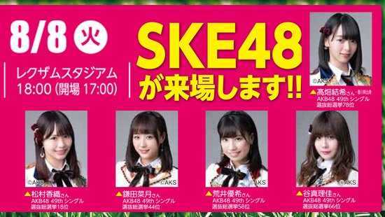 香川オリーブガイナーズ | ニュース | 8月8日(火)にSKE48(髙畑結希さん、松村香織さん、鎌田菜月さん、荒井優希さん、谷真理佳さん)が球場に登場!