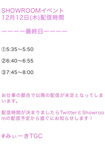 最後のshowroom 配信時間