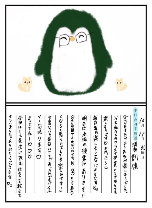 黒島咲花【NMB488期生】@sakura_panda48 -- 今日もペンギン先生が楽しそうでした笑笑かわいい💕今日はテスト前の自習?みたいなのに参加しました!リス先生が教えてくれたー♡ありがとうございます😊くまさん先生は今日も面白かった笑笑笑#黒島ヘヘヘ隊#黒島動物園#くまさん先生#ペンギン先生#リス先生 pic.twitter.com/jhMsBJ7XNk