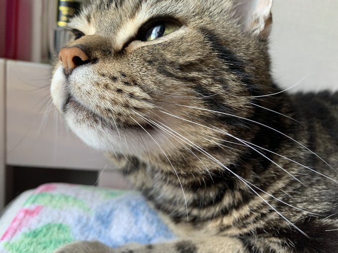 カーテンあけたら眩しそうに起きたぬこ