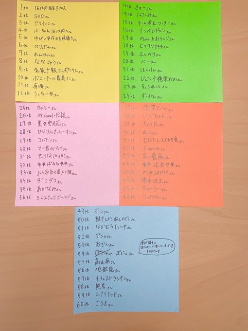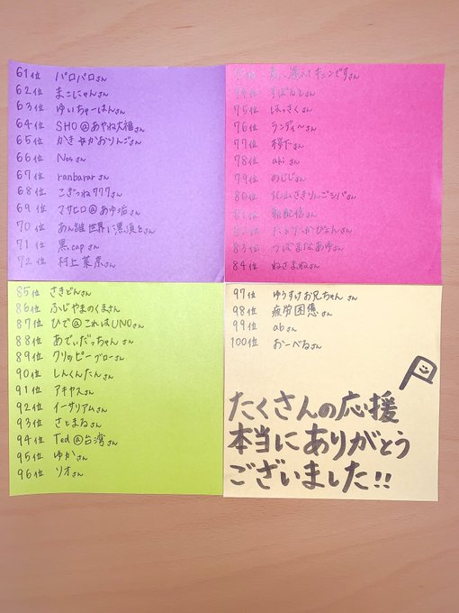ささやかですが、お礼に推しメンランキング100位以内の方のお名前を書きました☺︎!