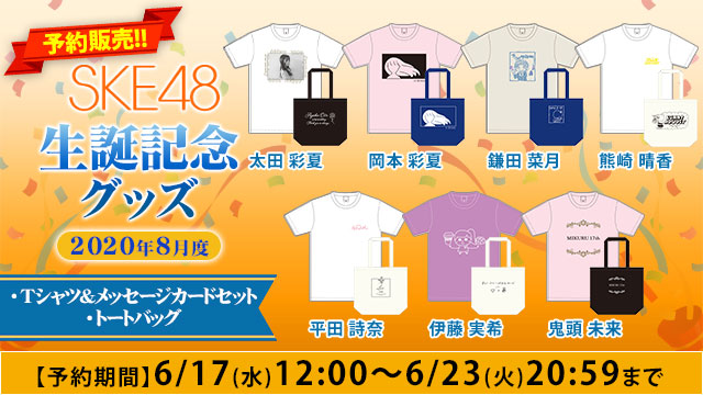 平田詩奈@shiina__0822 -- 明日お昼12時から予約販売開始します🌷♡みなさんぜひGETしてください!! twitter.com/akb48groupshop… AKB48グループショップ 明日6/17(水)正午12:00より予約販売開始✨#SKE48 #生誕記念グッズ 2020年8月度対象メンバー#太田彩夏/#岡本彩夏/#鎌田菜月/#熊崎晴香/#平田詩奈/#伊藤実希/#鬼頭未来対象商品Tシャツ&メッセージカードセット/トートバッグ⬇️ご予約はコチラshopping.akb48-group.com/selection/list…#AKB48グループショップ pic.twitter.com/xvJDsyoLGq
