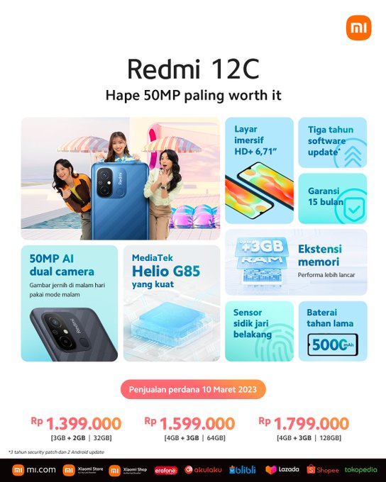 Redmi 12C sudah bisa didapatkan hari inii! yuk kembaran sama aku #HapePalingWorthIt #Redmi12C @XiaomiIndonesia pic.twitter.com/Q0qfTQl7zT