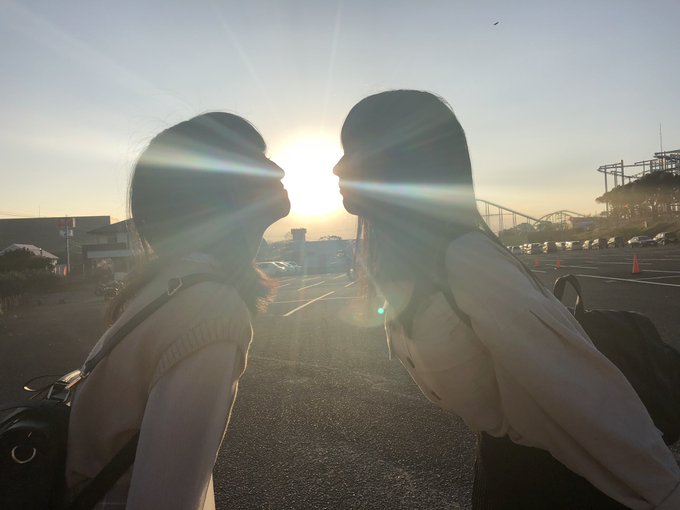 伊藤優絵瑠@itoyueru_1024 -- 花より男子が大好き過ぎて真似してみたかった(笑)#ドラマだいすき twitter.com/maria_0914_/st… 今村麻莉愛 夕日がいい感じだったからゆえるとどんだけキスシーンみたいな写真が撮れる遊んだよ💏😂4枚目が成功例👏🏻✨ #仲良しか pic.twitter.com/GSj6bWwkZE
