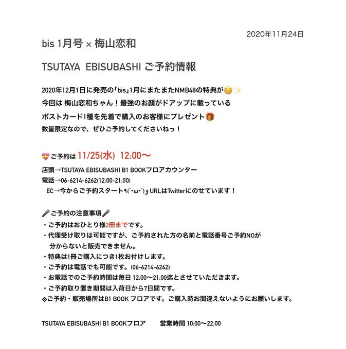 12/1発売 bis1月号もなんと #NMB48 特典が🤭🤭💖今月は #梅山恋和 ちゃんポストカード😭✨最強のお顔🥺🥺