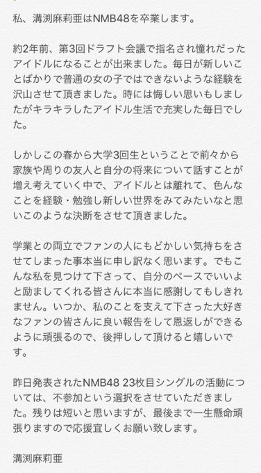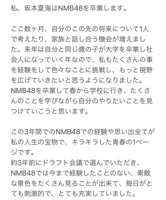 NMB48に入ることができて、素敵なメンバーやファンの皆さんに出会えてすごく幸せでした.:*♡