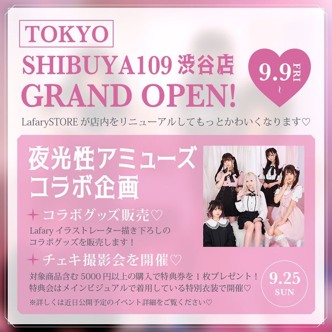 炎谷莉奈@rina_yoruami -- ラファリーさんコラボイベント♡会えます(ᐡ⸝⸝- -⸝⸝ᐡ)チェックしてね😽 twitter.com/yoruamiofficia… 夜光性アミューズ【よるあみ】 🎀 Lafary コラボ決定 🎀8/26(金)より大阪・梅田にて開かれるPOPUP STOREにて「夜光性アミューズ」のコラボキャンペーン実施中💓そして、9/9(金)よりLafaryのSHIBUYA109 渋谷店がリニューアル🌟それに伴い、来店イベントも実施決定❕詳しくはこちら⬇️lafary.shop/blogs/news/202…#よるあみ twitter.com/lafary_jp/stat… pic.twitter.com/dh3PZg2c4N