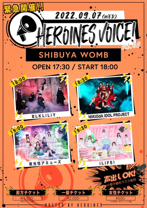 ヒロインズ主催なのでコメありあります!対バンで見つけてくれた人もヒロインズライブデビューしてくれたら嬉しいなぁ💭 twitter.com/yoruamiofficia…