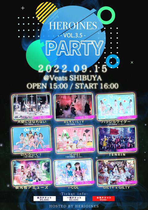 炎谷莉奈@rina_yoruami -- 明日のライブ!!タイテ少し変わってます!会えるかな〜〜?♡ twitter.com/heroines_idol/… HEROINES(ヒロインズ) 【タイムテーブル変更のお知らせ】9月15日(木)開催の『HEROINES PARTY vol.3.5』のSTART時間と一部出演順が変更となっております。変更前) START 15:30変更後) START 16:00最新のタイムテーブルは添付画像をご確認ください。▼チケット詳細t.livepocket.jp/e/h_party3-5#ヒロインズ pic.twitter.com/EaXzJzqaAi
