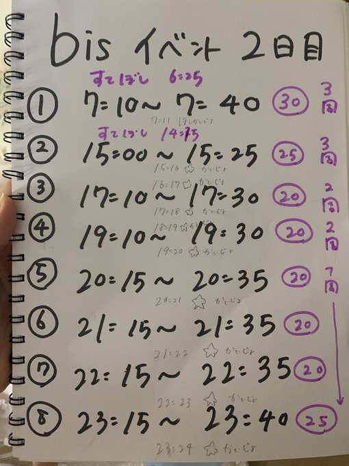 5枠、6枠、7枠のはじまりの時間を5分おくらせました🙋🏻♀️15時〜の配信にお星投げにこれなくても2周くらいできるスケジュールになってます!