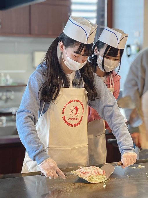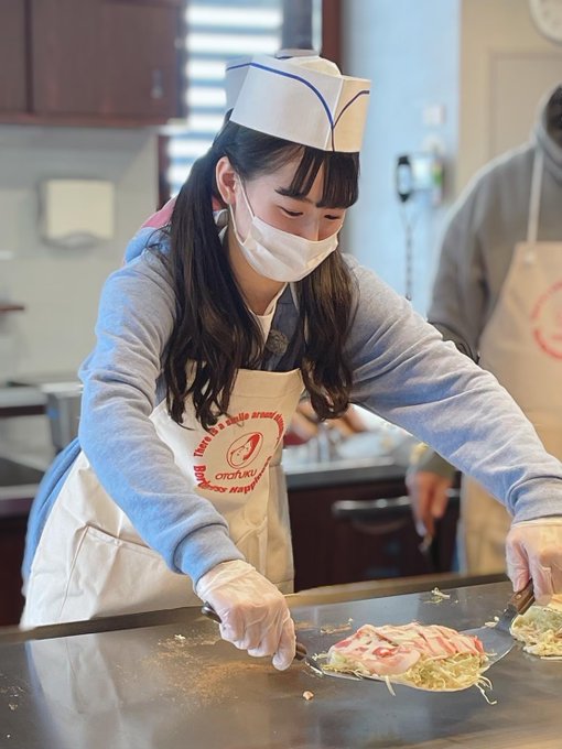 初めてお好み焼きをひっくり返すということで、すっごく緊張しました、、、💦