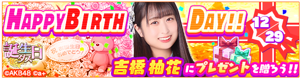 吉橋柚花 (AKB48)@akb48_yuzupi -- わーい直筆🥰ゲットしてくれたら嬉しいなあ❤️☁️ twitter.com/akb48_battlefe… バトフェス(バトルフェスティバル) 明日は吉橋柚花ちゃんのお誕生日です❣誕生日ダス開催中!誕生日カードは直筆メッセージ付き✨皆で一緒にお祝いしましょう🎉▼ゲームはこちらakb48battlefes.jp/app.html#AKB48 #吉橋柚花 #吉橋柚花生誕祭 #バトフェス pic.twitter.com/WoFGIm3wNb