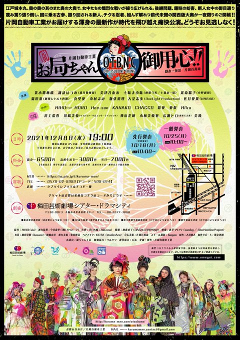 佐月愛果【NMB48】@aipipi_48 -- 先行販売本日23:59までです!!! twitter.com/103studio/stat… 片岡百萬両 【🔥先行チケット販売🔥】片岡自動車工業のたった一晩限りの大祭典「元祖 お局ちゃん御用心‼︎」in 梅田芸術劇場シアター・ドラマシティ明日10/18午前10:00より、先行販売が開始いたします‼️お近くのセブンイレブン等で、是非ともお早めのご予約お待ちしております。#片岡自動車工業#OTBNC pic.twitter.com/VhyQ0plR91
