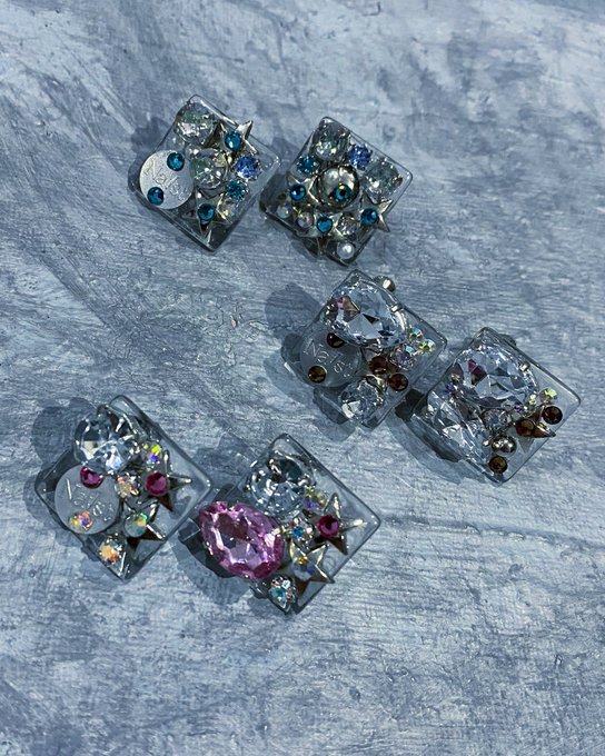 💎スター、ビジュ、ストーン、オリジナルパーツをクリアなガラスカボションに散りばめた店頭限定一点物のピアス/イヤリングです。