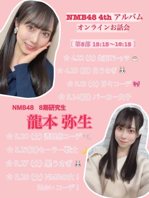 龍本弥生 tatsumoto yayoi@yayoko_845_48 -- 4次受付は本日のお昼12:00までです!弥生に会いに来てください~♡ twitter.com/yayoko_845_48/… 龍本弥生 tatsumoto yayoi オンラインお話し会の受付がスタートしました!やよいとビデオ通話気分〜❤️になれます。初めましての方でも気軽に参加してください♡♡🔗store.universal-music.co.jp/event/D2LT-105…(画像お借りしました♡) twitter.com/nmb48_official… pic.twitter.com/3UZ8EOZwbc