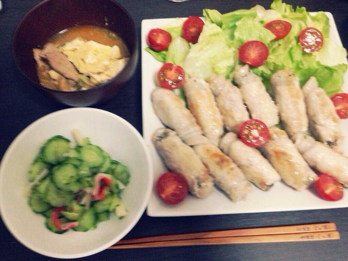 スンドゥブスープと、きゅうりの酢の物と、豚の梅巻き♡ pic.twitter.com/cvaIFFSXnF