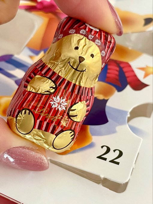 倉持明日香@asuka_k911 -- こんにちは🐸ラストスパートに向けてこのクマちゃんが続いてます♡幸#アドベントカレンダー#今日のちょこ#ちなみに頭から食べてます pic.twitter.com/ywkPmrS4vQ