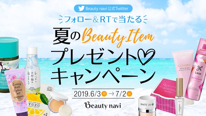 シンディー@urano_cindy1023 -- 簡単応募してみてね☺️❣️✌️ twitter.com/beautynavi/sta… Beauty navi ☀️#夏のBeautyitemプレゼントキャンペーン🏖️抽選で67名様にヘアケアアイテムや大人気コスメなど豪華プレゼントが当たる🎁💓☆応募条件①@beautynavi をフォロー②この投稿をRT応募要項▶️bit.ly/2QC6HIG⚠️締切:2019/7/2#ビューティーナビ #プレゼントキャンペーン #コスメ #ヘアケア pic.twitter.com/TeaIPFagOZ