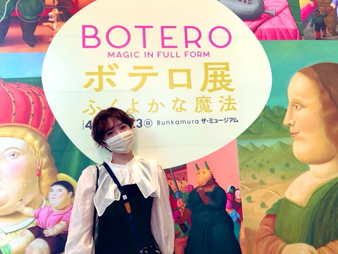 片山陽加@haachandayoo -- 先日、ボテロ展へ!!丸いフォルムが可愛くて目が印象的で!!どんな気持ちで描いてるのかなとか色々想像できる絵画って楽しいよね🖼私も大きなキャンバスにまた絵描きたいなぁ〜#ボテロ展 pic.twitter.com/6jPAZTvSSP
