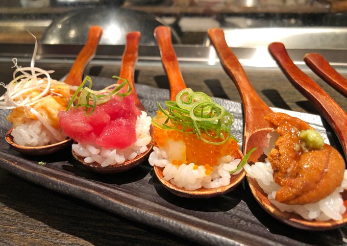 色とりどりな7種のスプーン寿司(1380円)を食べられるお店。